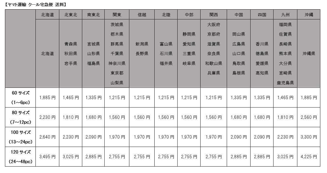 商品はすべて、「クール便(冷凍)」にて配送致します。